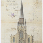 Opschrift: Eglise de N.D. Immaculée à Cureghem - Anderlecht. Achèvement de la tour. Omschrijving plan: opstand voorgevel Datum KCML: 30/10/1897 Archiefnummer: B1607