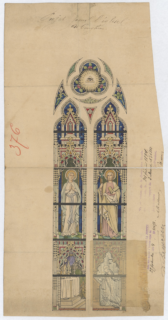 Opschrift: Porjet pour l'Eglise de Cureghem. Omschrijving plan: glasraam Datum KCML: 24/02/1894 Archiefnummer: B1605_01