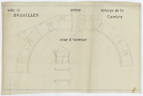 Opschrift: Ville de Bruxelles. Abbaye de la Cambre. Omschrijving plan: plattegrond niveau 0, plattegrond voorplein Datum KCML: deze informatie wordt niet vermeld op het archiefstuk Archiefnummer: B1703