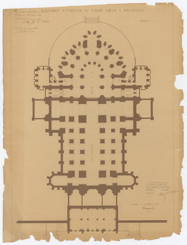 Opschrift: Basilique Nationale du Sacré-Coeur à Bruxelles. Omschrijving plan: plattegrond niveau -1, plattegrond crypte Datum KCML: 18/05/1907 Archiefnummer: B1781