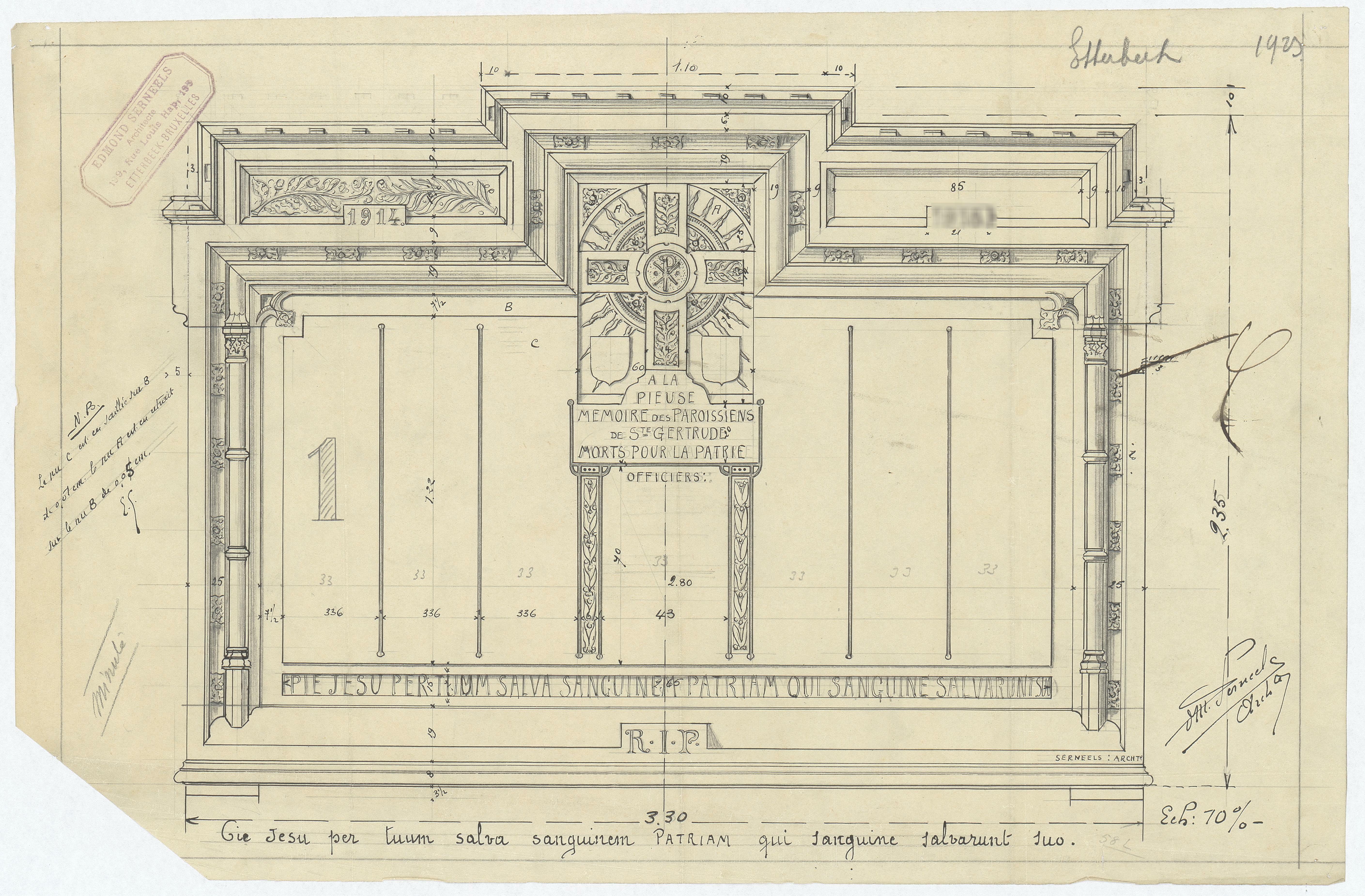 Opschrift: deze informatie wordt niet vermeld op het archiefstuk Omschrijving plan: aanzicht gedenkteken WO I Datum KCML: deze informatie wordt niet vermeld op het archiefstuk Archiefnummer: B1766