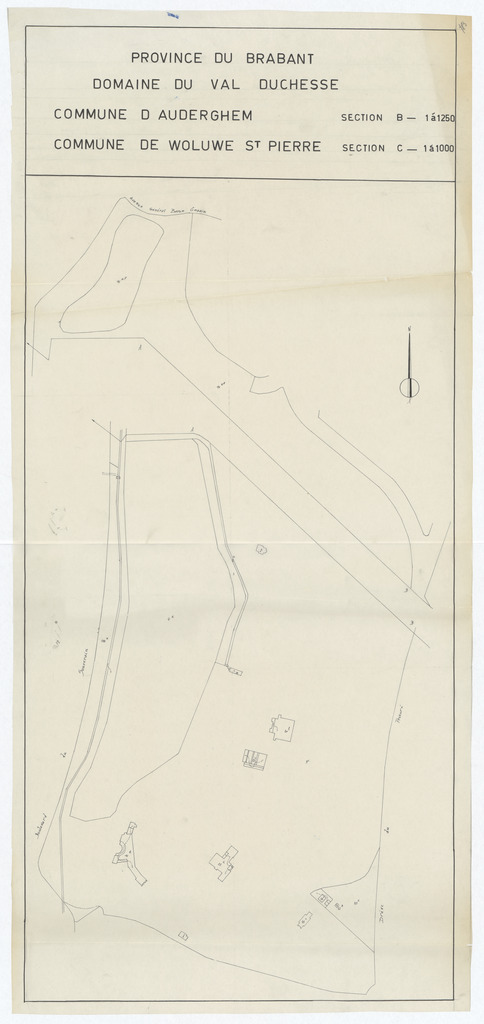 Opschrift: Province du Brabant. Domaine du Val Duchesse. Commune d'Auderghem, commune de Woluwe St. Pierre. Omschrijving plan: situatieplan Datum KCML: deze informatie wordt niet vermeld op het archiefstuk Archiefnummer: B1793