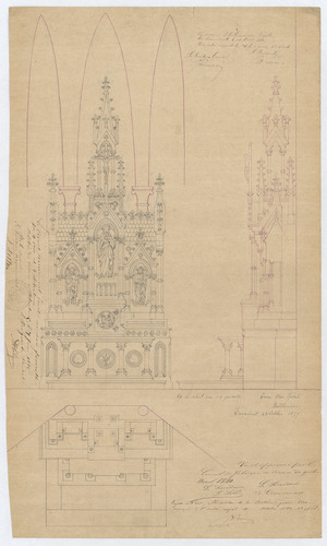 Opschrift: deze informatie wordt niet vermeld op het archiefstuk Omschrijving plan: plattegrond, voor- en zijaanzicht altaar Datum KCML: 14/08/1880 Archiefnummer: B1831