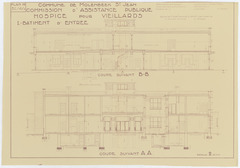 Opschrift: Commune de Molenbeek St. Jean. Commission d'Assistance Publique. Hospice pour veillards. I.-Bâtiment d'entrée. Omschrijving plan: doorsneden Datum KCML: deze informatie wordt niet vermeld op het archiefstuk Archiefnummer: B1920