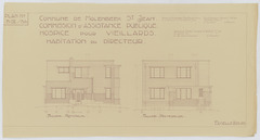Opschrift: Commune de Molenbeek St. Jean. Commission d'Assistance Publique. Hospice pour veillards. Habitation du directeur. Omschrijving plan: opstand voorgevel, opstand achtergevel Datum KCML: deze informatie wordt niet vermeld op het archiefstuk Archiefnummer: B1953