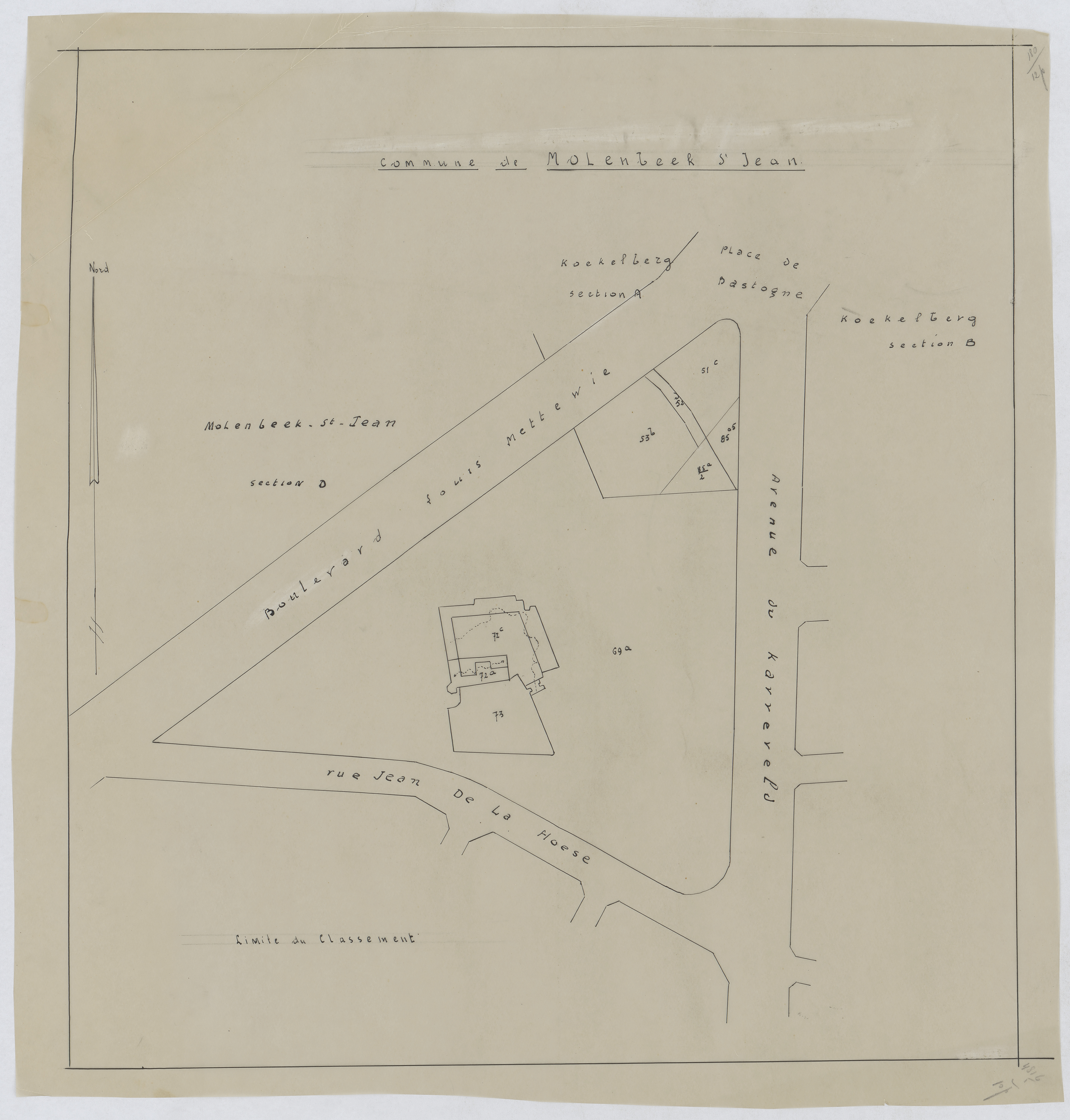 Opschrift: Commune de Molenbeek-St.-Jean. Omschrijving plan: situatieplan Datum KCML: deze informatie wordt niet vermeld op het archiefstuk Archiefnummer: B1967