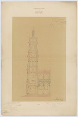 Opschrift: Achèvement de l'église de St. Josse. à St.-Josse-ten Noode. Arrondissement de Bruxelles. Province de Brabant. Omschrijving plan: doorsnede toren Datum KCML: 6 /07/1867 Archiefnummer: B1976