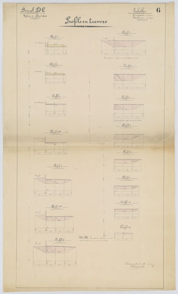Opschrift: Rue A.D.C. Eglise de Boitsfort. Profils en travers Omschrijving plan: profielen Datum KCML: deze informatie wordt niet vermeld op het archiefstuk Archiefnummer: B2109