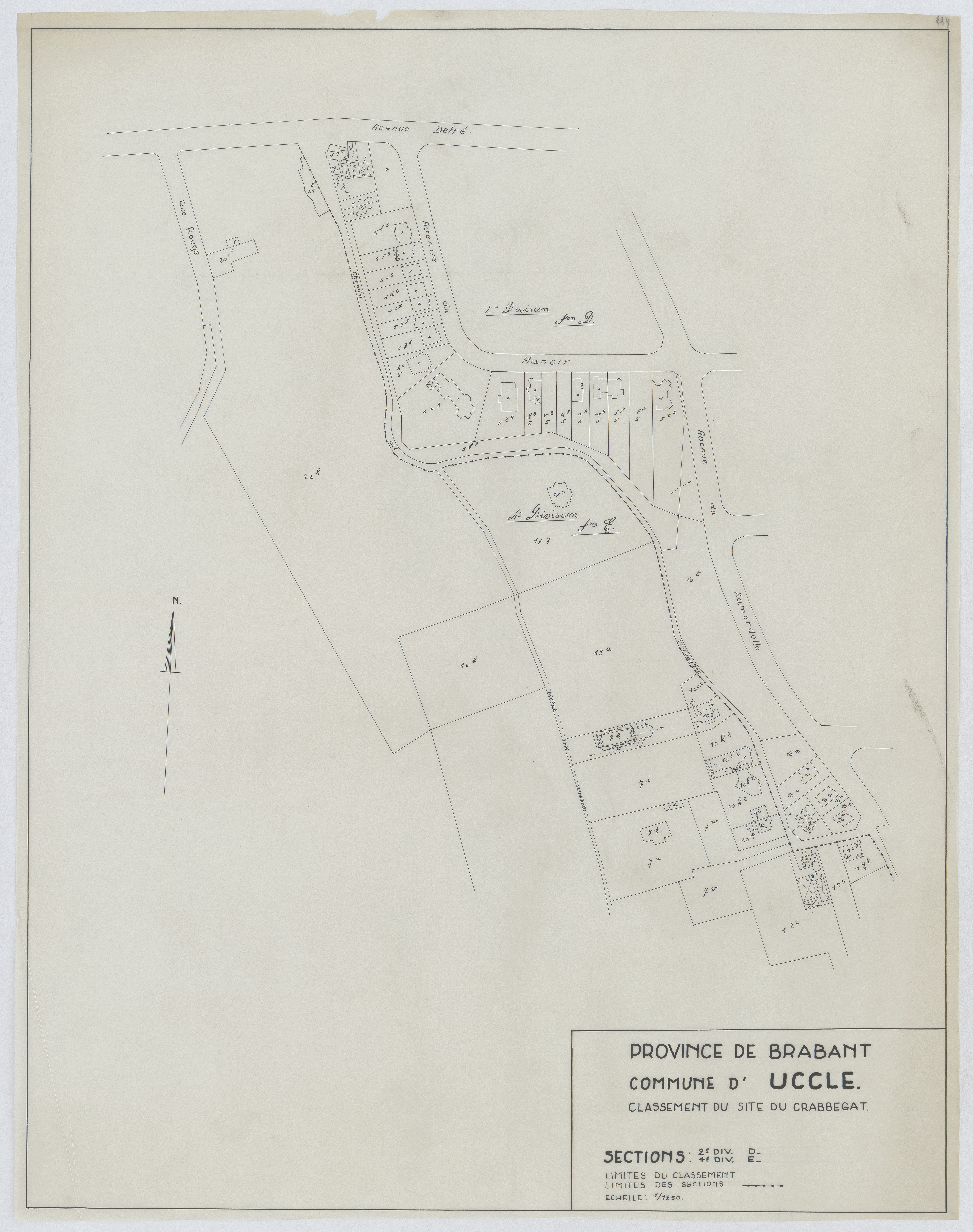 Opschrift: Province de Brabant. Commune d'Uccle. Classement du site du Crabbegat. Omschrijving plan: situatieplan Datum KCML: deze informatie wordt niet vermeld op het archiefstuk Archiefnummer: B2022