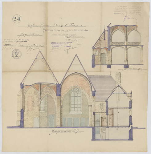 Opschrift: Eglise Saint Denis a Forest. Restauration et agrandissement. Omschrijving plan: dwarsdoorsnede Datum KCML: 22/06/1918 Archiefnummer: B2094