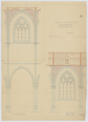 Opschrift: Eglise de Boitsfort. Coupe haute nef. Coupe basse nef. Omschrijving plan: doorsnede beuken Datum KCML: 15/06/1912 Archiefnummer: B2137