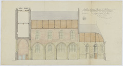 Opschrift: Eglise Saint Denis a Forest. Restauration et agrandissement. Omschrijving plan: langsdoorsnede Datum KCML: deze informatie wordt niet vermeld op het archiefstuk Archiefnummer: B2081