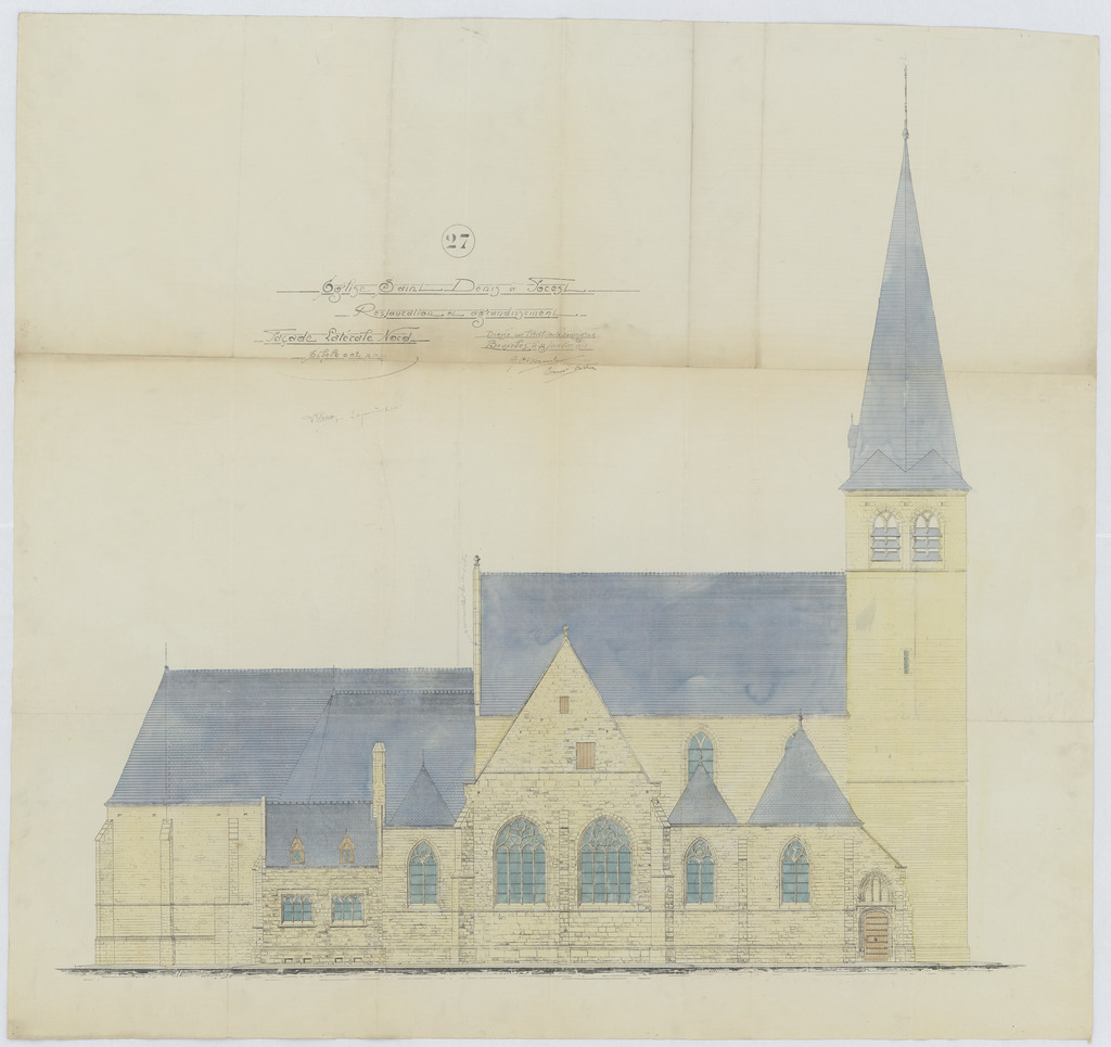 Opschrift: Eglise Saint Denis a Forest. Restauration et agrandissement. Omschrijving plan: opstand N-gevel Datum KCML: deze informatie wordt niet vermeld op het archiefstuk Archiefnummer: B2088
