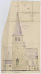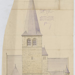 Opschrift: Eglise Saint Denis a Forest. Restauration et agrandissement. Omschrijving plan: opstand W-gevel Datum KCML: 22/06/1918 Archiefnummer: B2095