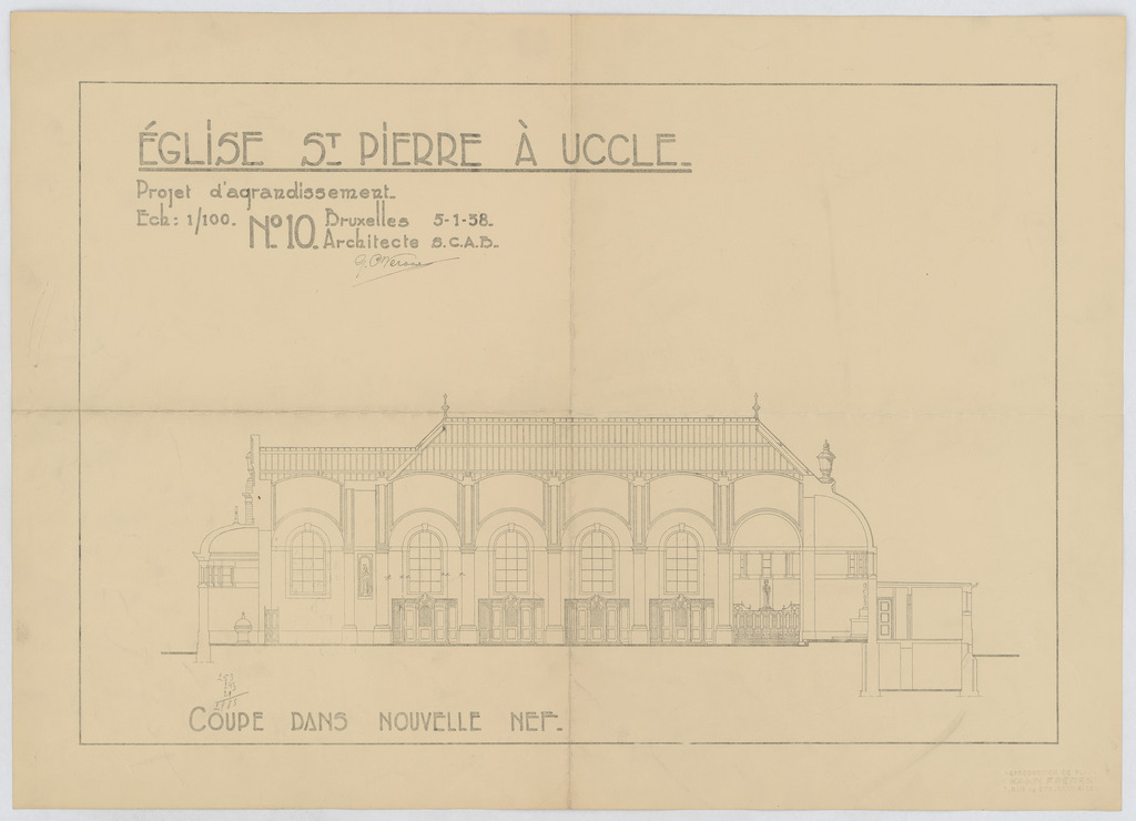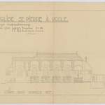 Opschrift: Eglise St.-Pierre à Uccle. Projet d'agrandissement. Omschrijving plan: langsdoorsnede Datum KCML: deze informatie wordt niet vermeld op het archiefstuk Archiefnummer: B2034