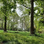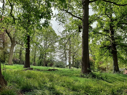 Het beboomde zuidelijke parkgedeelte van villa Louisa