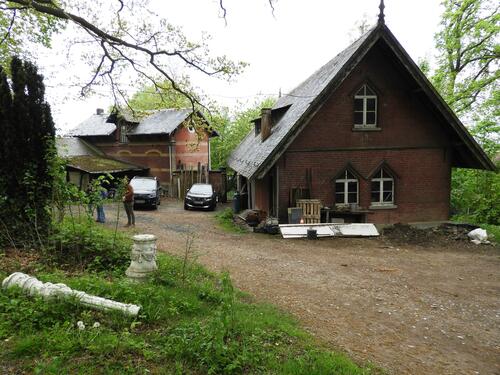Koetshuis (rechts) en hovenierswoning (links): dienstgebouwen bij villa Louisa.