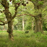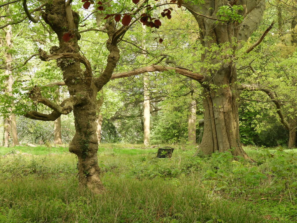 Vederesdoorn (links) en Amerikaanse eik (rechts) in het grasperk bij villa Louisa (zuidelijke parkgedeelte).