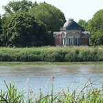 Het 18de-eeuws paviljoen, genaamd de Notelaer: zicht vanaf de andere kant van de Schelde