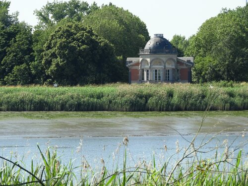 Het 18de-eeuws paviljoen, genaamd de Notelaer: zicht vanaf de andere kant van de Schelde
