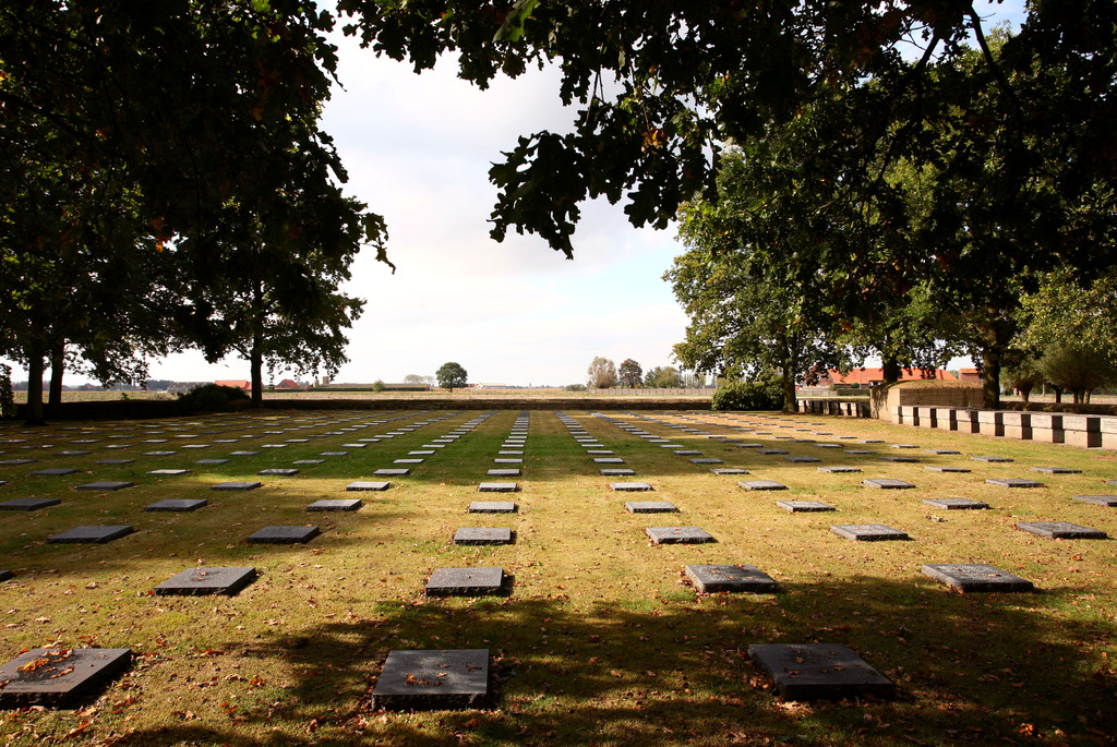 De afbeelding 'Duitse militaire begraafplaats Langemark' gemaakt door Vandevorst, Kris wordt ter beschikking gesteld door Agentschap Onroerend Erfgoed (AOE) onder de volgende voorwaarden: Modellicentie voor gratis hergebruik, Naamsvermelding-GelijkDelen 4.0 Internationaal.