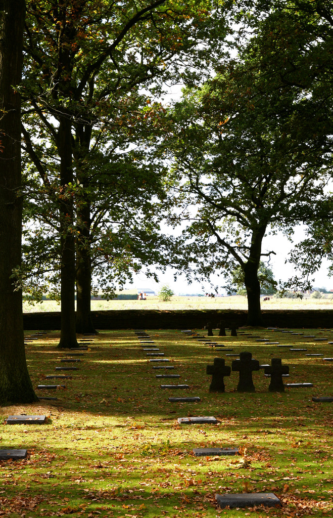 De afbeelding 'Duitse militaire begraafplaats Langemark' gemaakt door Anoniem wordt ter beschikking gesteld door Agentschap Onroerend Erfgoed (AOE) onder de volgende voorwaarden: Modellicentie voor gratis hergebruik, Naamsvermelding-GelijkDelen 4.0 Internationaal.