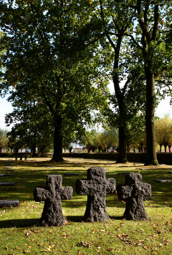 De afbeelding 'Duitse militaire begraafplaats Langemark' gemaakt door Vandevorst, Kris wordt ter beschikking gesteld door Agentschap Onroerend Erfgoed (AOE) onder de volgende voorwaarden: Modellicentie voor gratis hergebruik, Naamsvermelding-GelijkDelen 4.0 Internationaal.