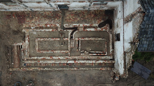Bij de opgraving die volgde op de toevalsvondst, werden sporen aangetroffen die geïnterpreteerd worden als de restanten van een (verwarmde) serre en een opslagruimte uit de 19de eeuw.