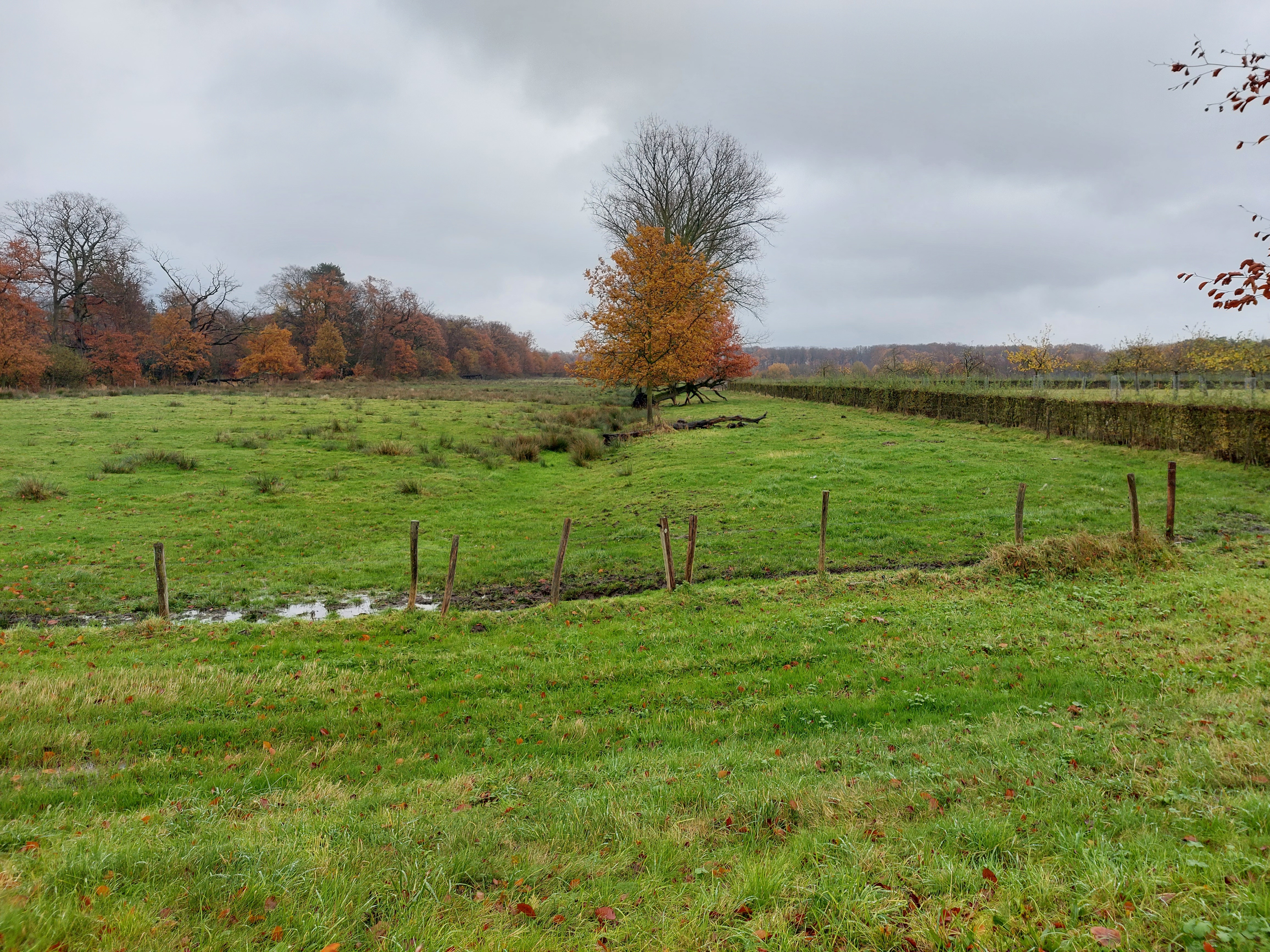 Perceel met opvallend reliëf: in de 17de eeuw bevond zich hier het Kraaienbos, waarbij een gracht de perceelsgrens vormde. De gracht is gedempt, maar vormt duidelijk een grens tussen het lager gelegen grasland en een iets hoger gelegen perceel.