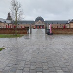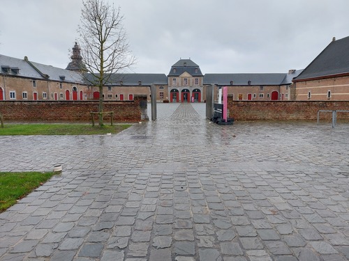 Het neerhof van de abdij van Herkenrode, waarvan de binnenkoer rond 2008 met kasseien is verhard.