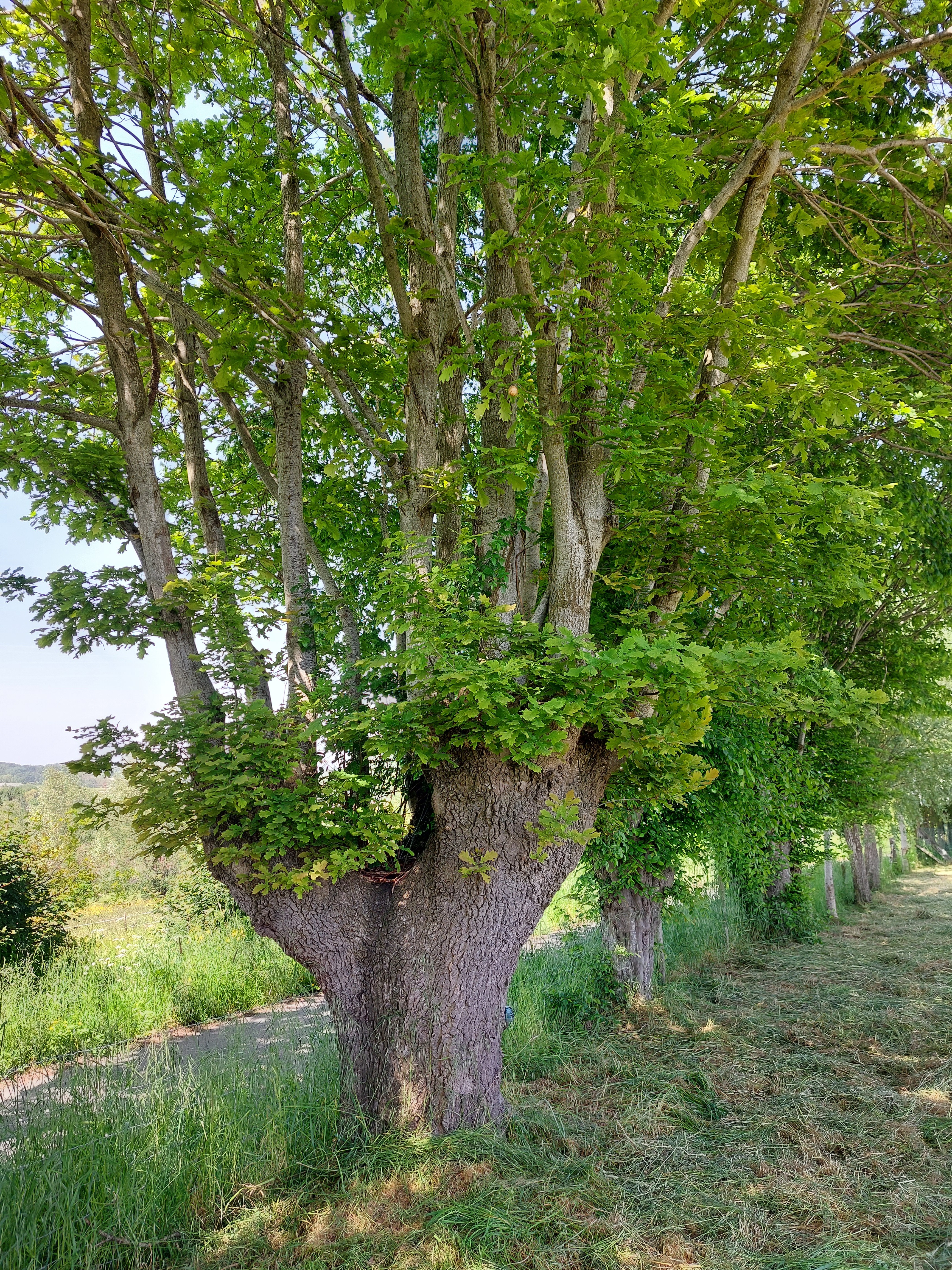 De afbeelding 'Knotbomenrij' gemaakt door Smets, Koen wordt ter beschikking gesteld door Agentschap Onroerend Erfgoed (AOE) onder de volgende voorwaarden: Modellicentie voor gratis hergebruik, Naamsvermelding-GelijkDelen 4.0 Internationaal.