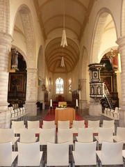 De afbeelding 'Parochiekerk Sint-Martinus met kerkhof' gemaakt door Jacobs, Els wordt ter beschikking gesteld door Agentschap Onroerend Erfgoed (AOE) onder de volgende voorwaarden: Modellicentie voor gratis hergebruik, Naamsvermelding-GelijkDelen 4.0 Internationaal.