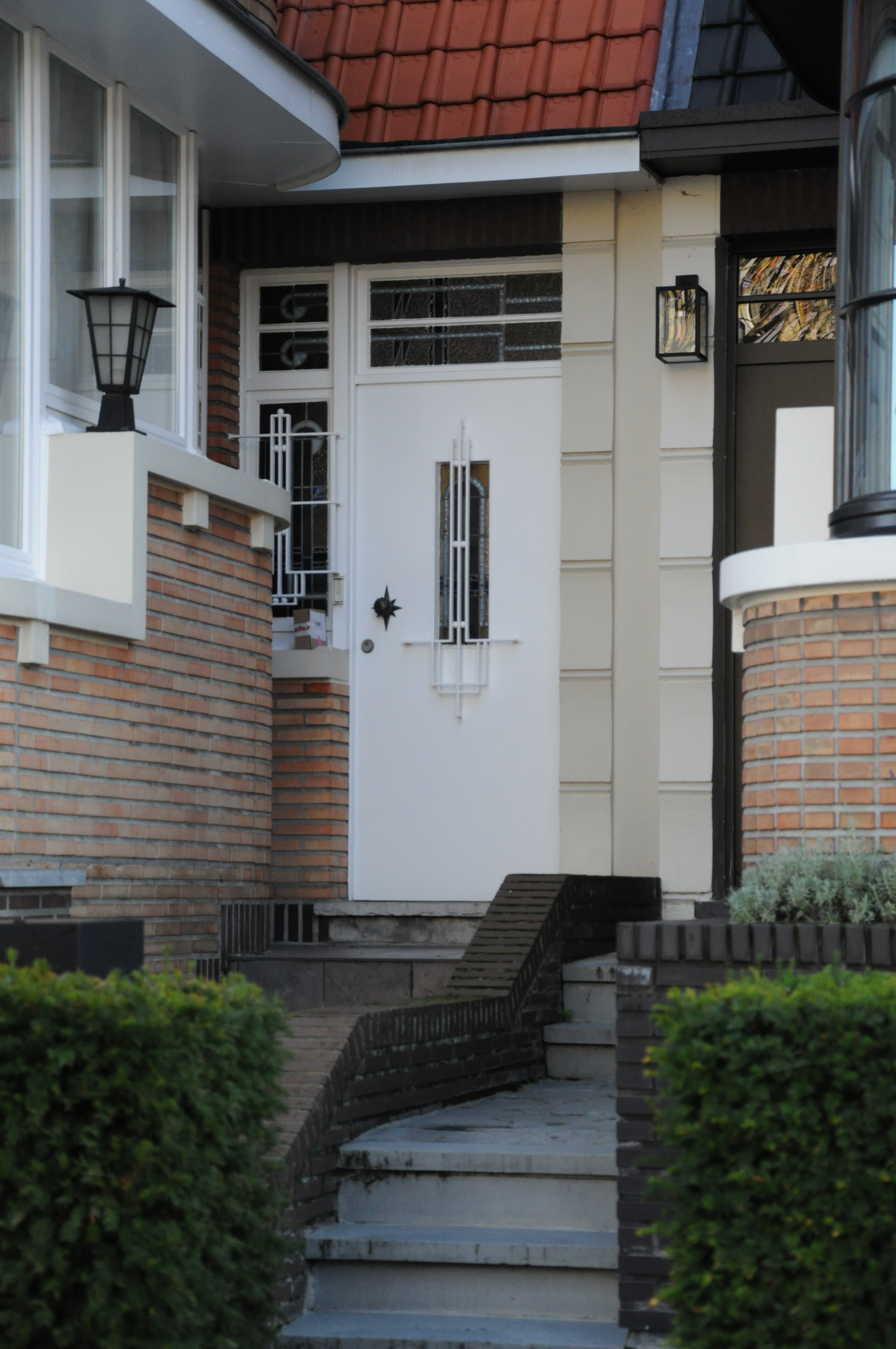 De afbeelding 'Twee stadswoningen in modernistische stijl' gemaakt door Fexer, Charlotte wordt ter beschikking gesteld door Stad Antwerpen onder de volgende voorwaarden: Modellicentie voor gratis hergebruik, Naamsvermelding-GelijkDelen 4.0 Internationaal.
