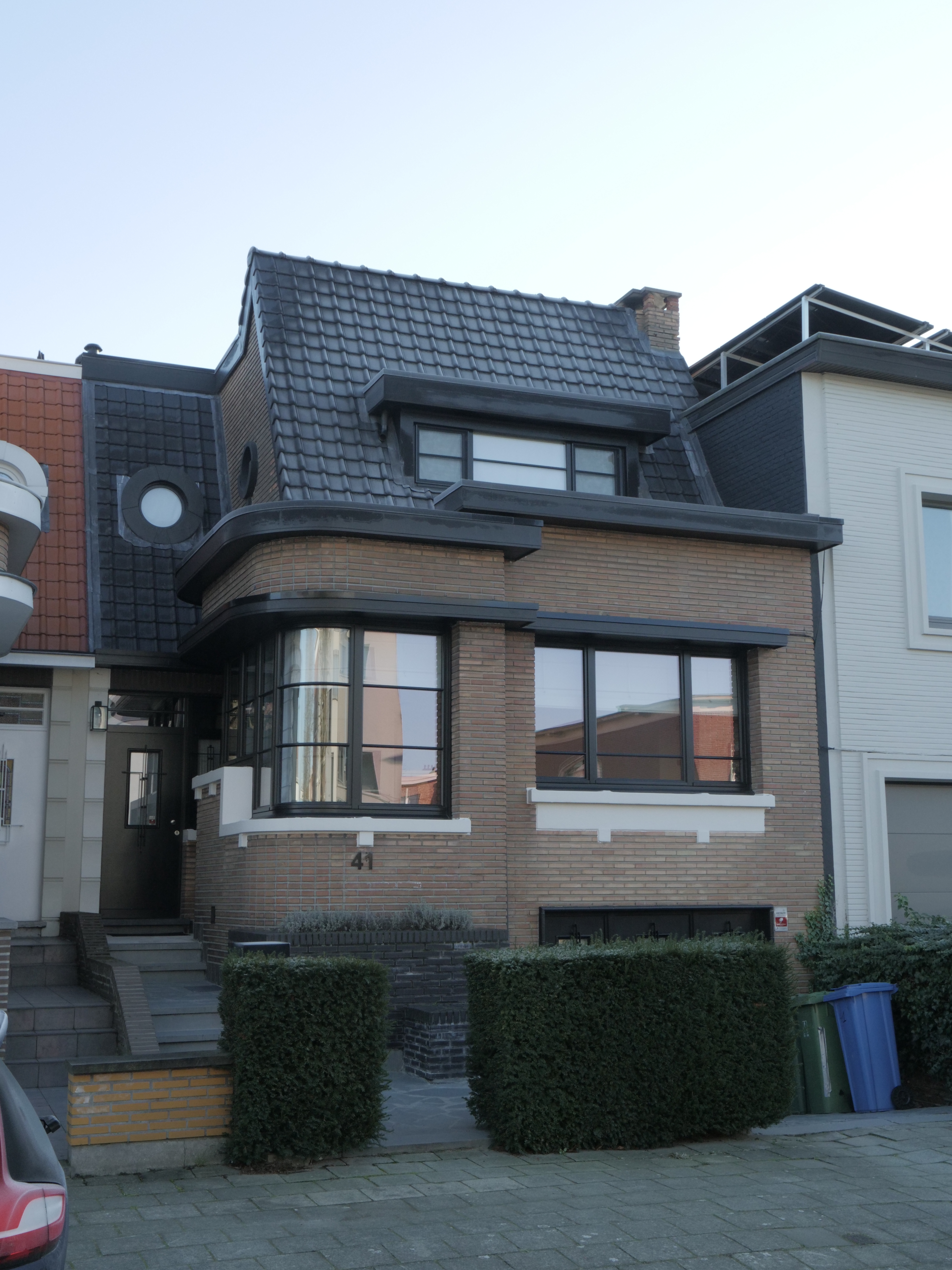 De afbeelding 'Twee stadswoningen in modernistische stijl' gemaakt door Fexer, Charlotte wordt ter beschikking gesteld door Stad Antwerpen onder de volgende voorwaarden: Modellicentie voor gratis hergebruik, Naamsvermelding-GelijkDelen 4.0 Internationaal.