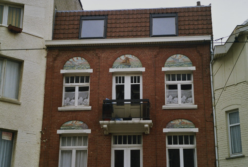 Omschrijving: ROHM - WEST-VLAANDEREN CEL M & L Villa Sarah 20ste ? voorgevel majolicategels
