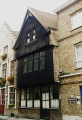 De afbeelding 'Stadswoning met houten puntgevel' gemaakt door Metdepenninghen, Catheline wordt ter beschikking gesteld door Agentschap Onroerend Erfgoed (AOE) onder de volgende voorwaarden: Modellicentie voor gratis hergebruik, Naamsvermelding-GelijkDelen 4.0 Internationaal.