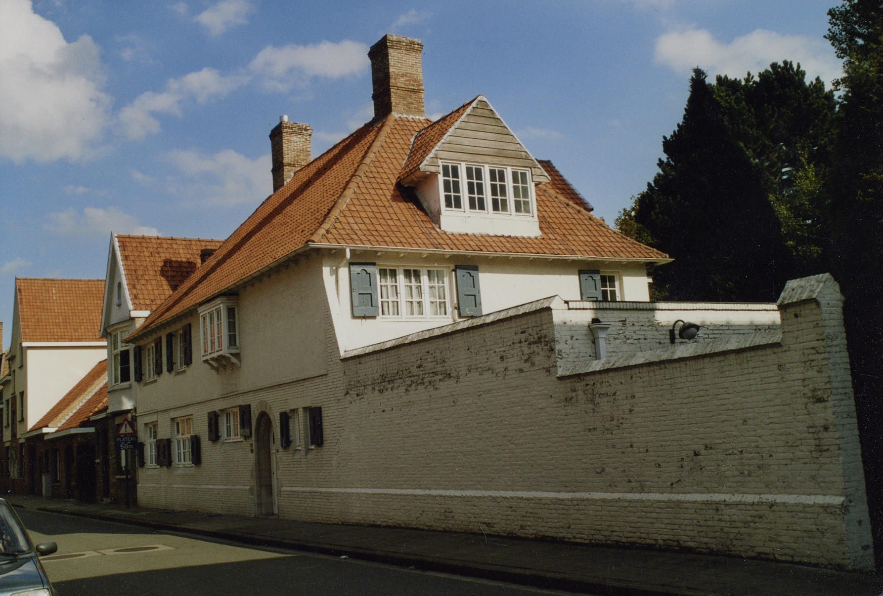 De afbeelding 'Villa met grote beboomde tuin achter tuinmuur' gemaakt door Vanwalleghem, Aagje wordt ter beschikking gesteld door Agentschap Onroerend Erfgoed (AOE) onder de volgende voorwaarden: Modellicentie voor gratis hergebruik, Naamsvermelding-GelijkDelen 4.0 Internationaal.