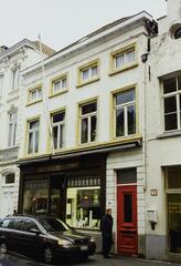 De afbeelding 'Stadswoning met houten winkelpui' gemaakt door Vanwalleghem, Aagje wordt ter beschikking gesteld door Agentschap Onroerend Erfgoed (AOE) onder de volgende voorwaarden: Modellicentie voor gratis hergebruik, Naamsvermelding-GelijkDelen 4.0 Internationaal.