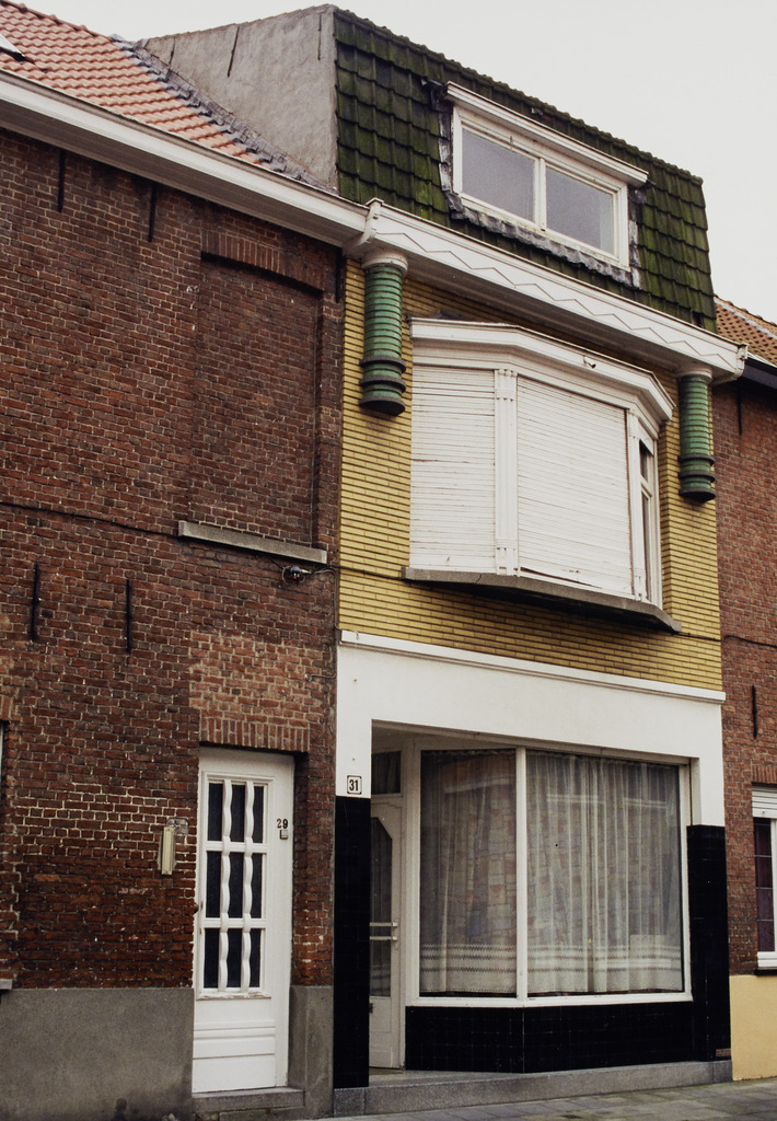 De afbeelding 'Burgerhuis met winkel' gemaakt door Gilté, Stefanie wordt ter beschikking gesteld door Agentschap Onroerend Erfgoed (AOE) onder de volgende voorwaarden: Modellicentie voor gratis hergebruik, Naamsvermelding-GelijkDelen 4.0 Internationaal.