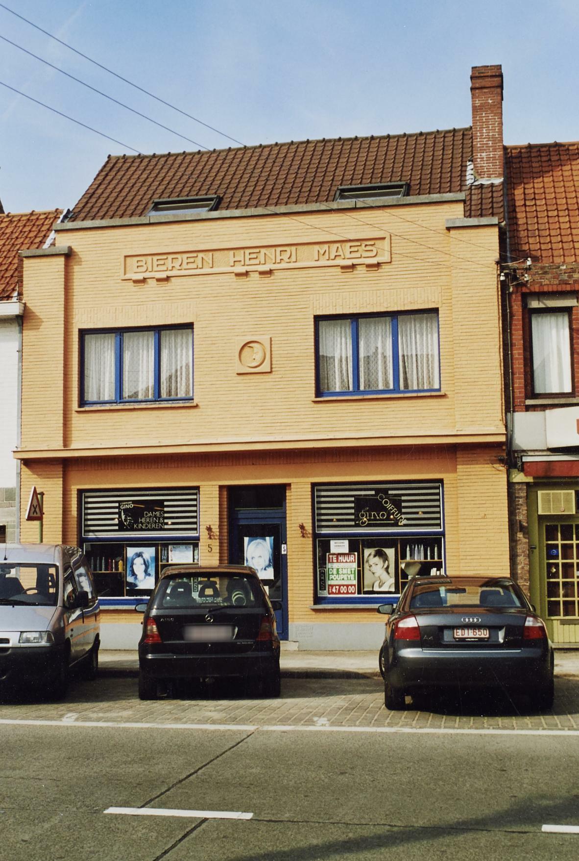 De afbeelding 'Café Bieren Henri Maes' gemaakt door Vanwalleghem, Aagje wordt ter beschikking gesteld door Agentschap Onroerend Erfgoed (AOE) onder de volgende voorwaarden: Modellicentie voor gratis hergebruik, Naamsvermelding-GelijkDelen 4.0 Internationaal.