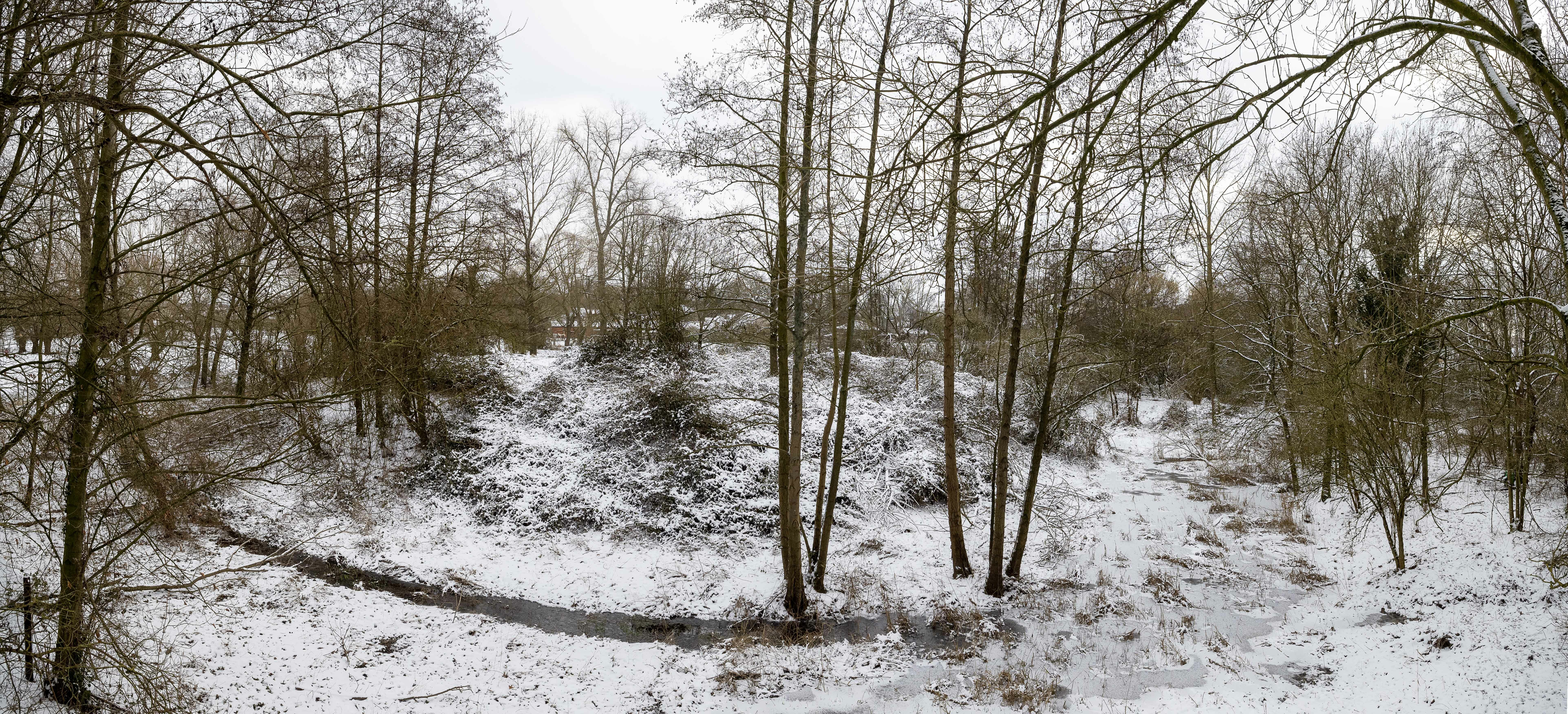 Zicht op de motteheuvel en aanliggende gracht