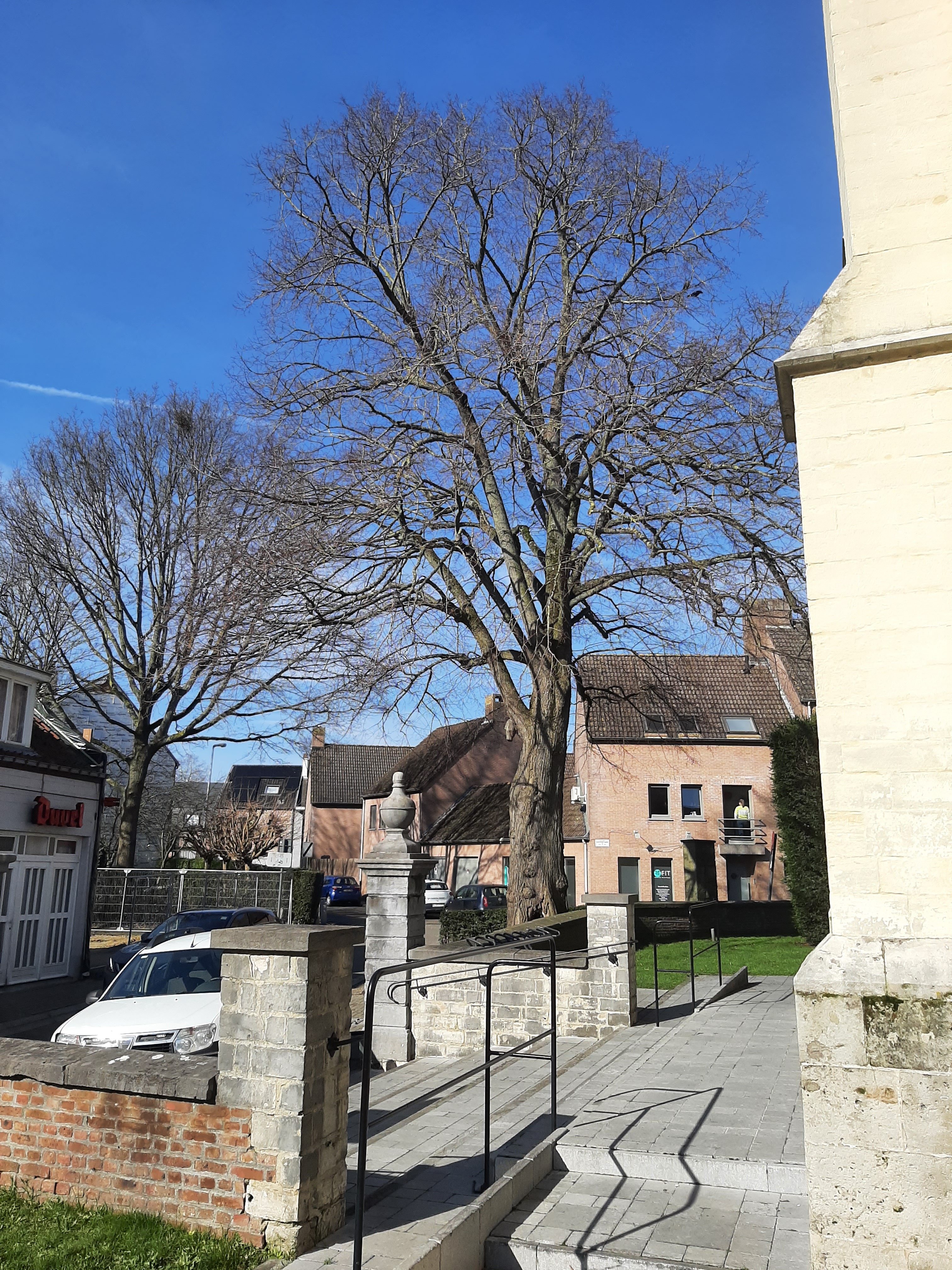 De afbeelding 'Vredesboom bij kerkhof' gemaakt door Peeters, Virginie wordt ter beschikking gesteld door Agentschap Onroerend Erfgoed (AOE) onder de volgende voorwaarden: Modellicentie voor gratis hergebruik, Naamsvermelding-GelijkDelen 4.0 Internationaal.