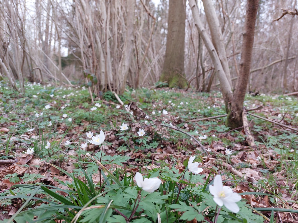 Bosanemonen als voorjaarbloeiers in het Kareelbos bij Silsombos