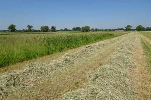 De afbeelding 'Gehooide graslanden in de Langemeersen in Petegem' gemaakt door Himpe, Koen wordt ter beschikking gesteld door Agentschap Onroerend Erfgoed (AOE) onder de volgende voorwaarden: Modellicentie voor gratis hergebruik, Naamsvermelding-GelijkDelen 4.0 Internationaal.
