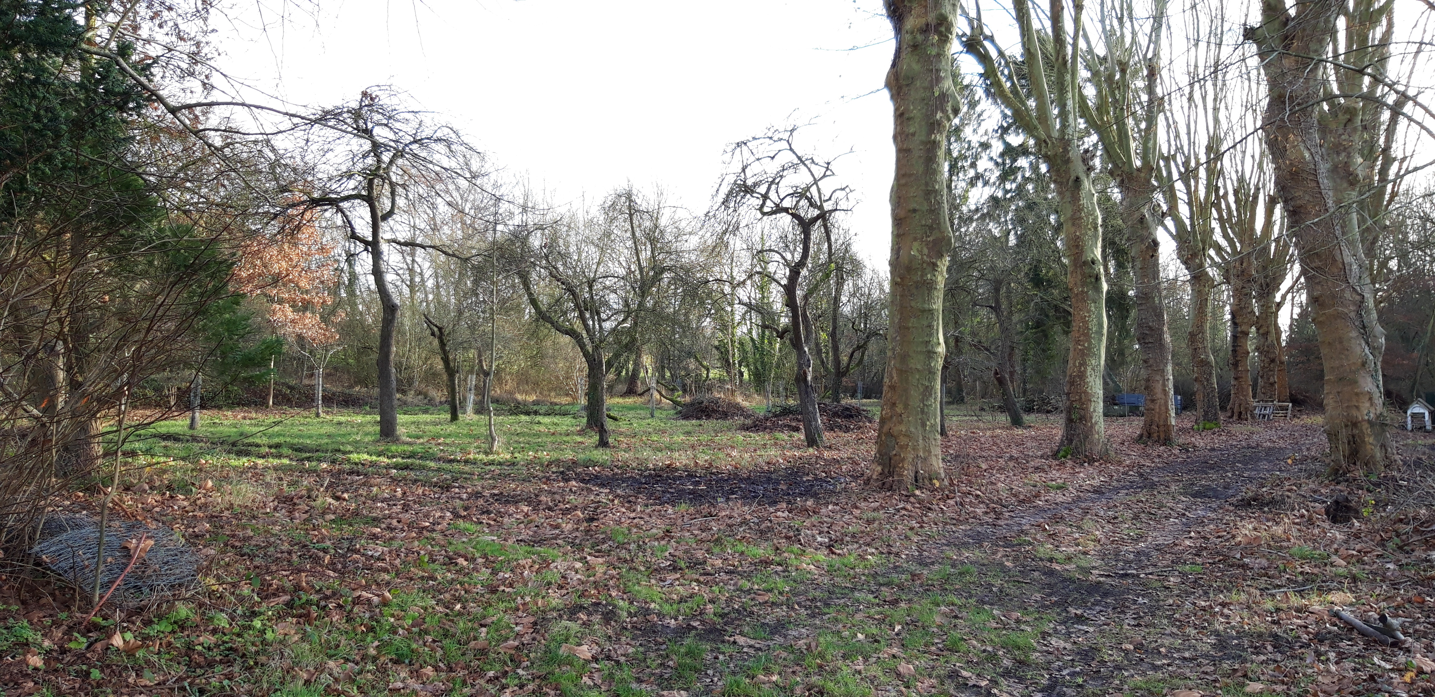 Boomgaard oost van de dreef met platanen