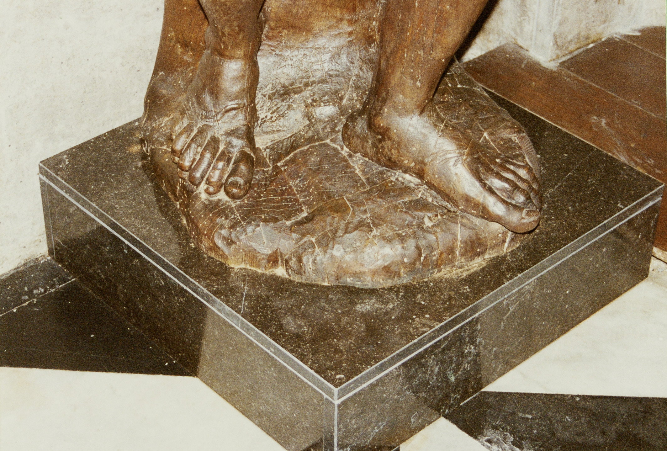 Omschrijving: Sint-Salvatorskerk Christur op de koude steen