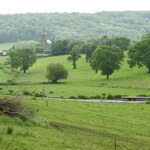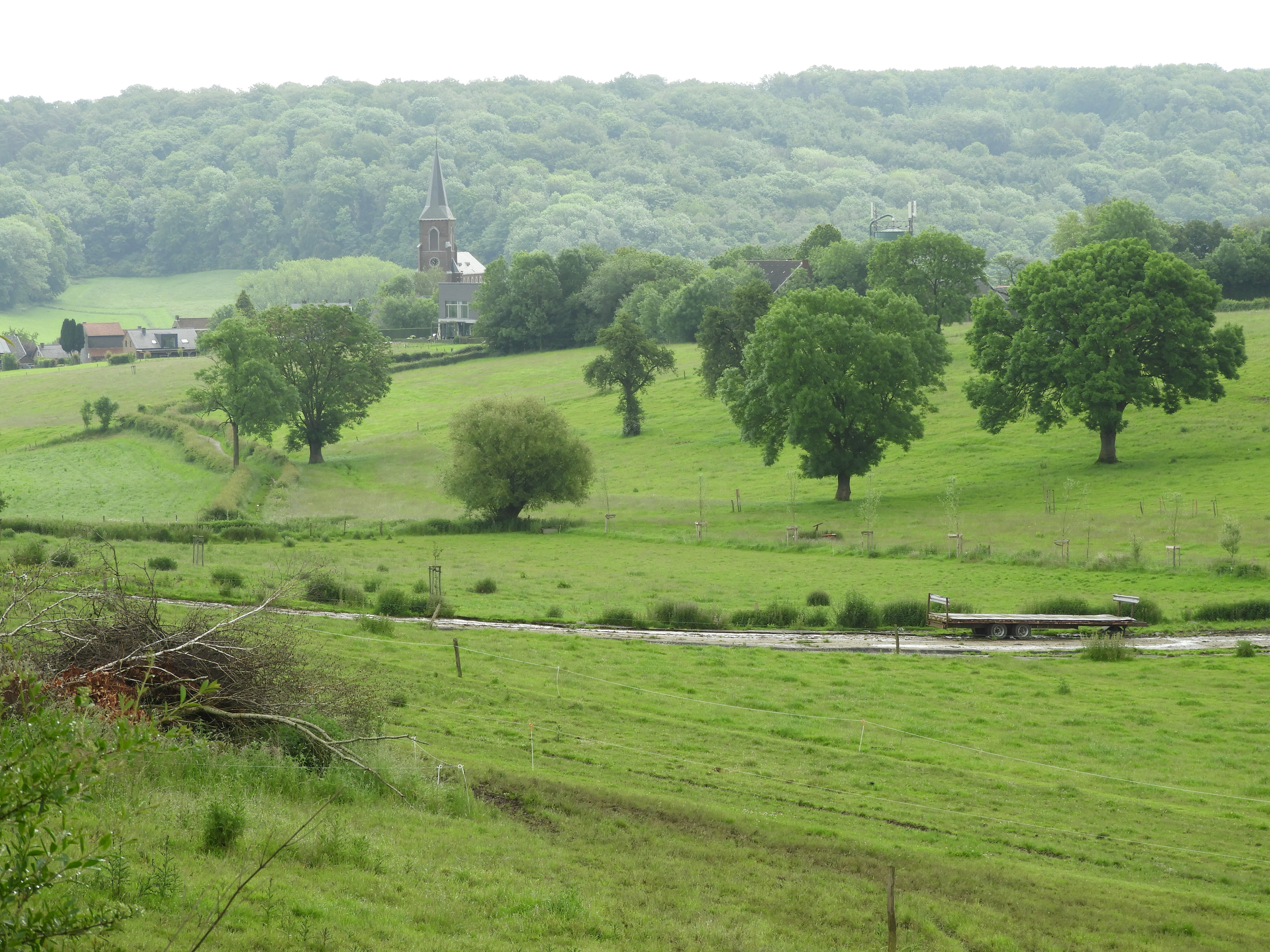 Zicht op de kerk van Teuven, met bosreservaat Teuvenerberg in de achtergrond
