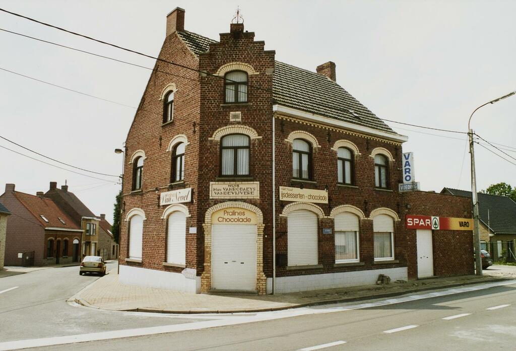 De afbeelding 'Hoek- en handelspand van 1923' gemaakt door Vanneste, Pol wordt ter beschikking gesteld door Agentschap Onroerend Erfgoed (AOE) onder de volgende voorwaarden: Modellicentie voor gratis hergebruik, Naamsvermelding-GelijkDelen 4.0 Internationaal.