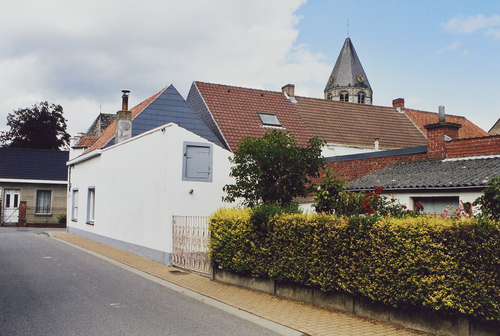 Omschrijving: ROHM West-Vlaanderen Cel Monumenten en Landschappen straatbeeld naar kerk toe