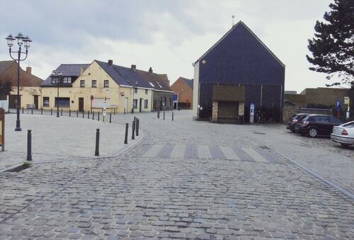 De afbeelding 'Dorpstraat' wordt ter beschikking gesteld door Agentschap Onroerend Erfgoed (AOE) onder de volgende voorwaarden: Modellicentie voor gratis hergebruik, Naamsvermelding-GelijkDelen 4.0 Internationaal.